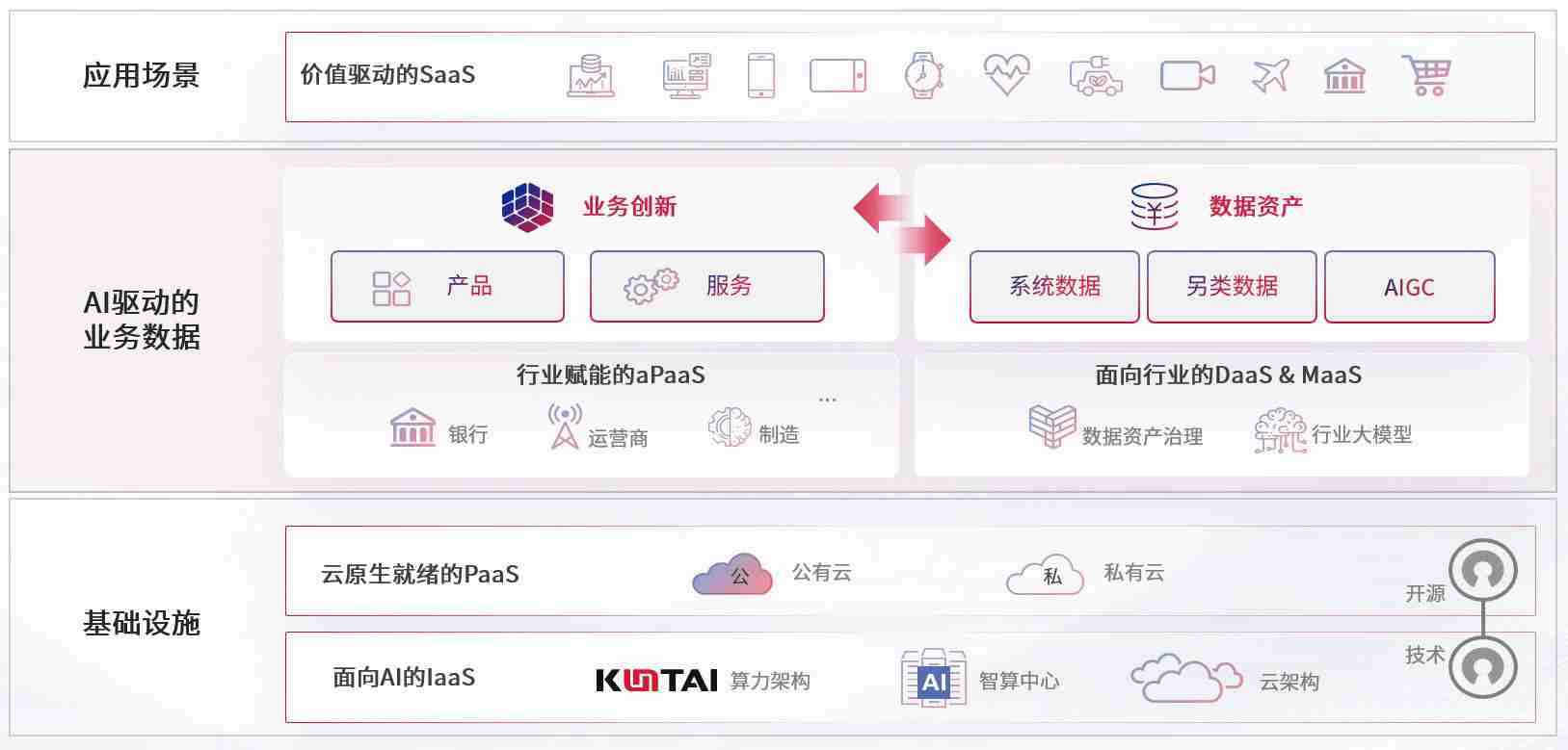 数字时代,,,围绕企业数字化转型的关键要素,,,PA旗舰厅数码开创性的提出数云融合战略和技术体系框架,,,着力在云原生、、数字原生、、、、AI原生和信创产业上架构产品和服务能力,,,,为处在不同数字化转型阶段的快消零售、、、汽车、、金融、、、医疗、、、、政企、、、教育、、、、运营商等行业客户提供泛在的敏捷IT能力和融合的数据驱动能力,,,构建跨界融合创新的数字业务场景和新业务模式,,,助力企业级客户建立面向未来的核心能力和竞争优势,,,全面推动社会的数字化、、、、智能化转型升级。。。